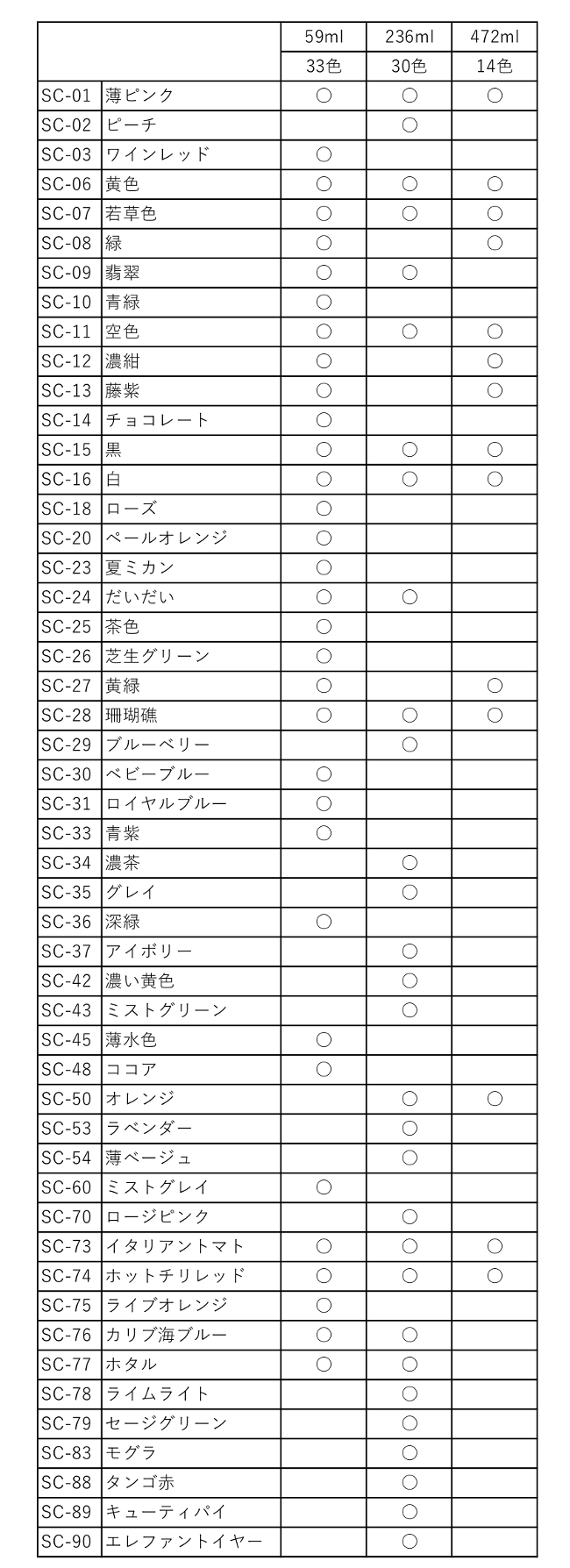 ¾ÆÀ®²¹Åٰ褬¹¤¯¡¢¿§¿ô¤âËÉ٤ʻȤ¤¤ä¤¹¤¤îØÌô¤Ç¤¹¡£ ÁǾƤ¤Ø¤Î»ÜîØ¤Î¤Û¤«¡¢ ËܾƤ¸å¤ÎºîÉʤ˾峨¶ñ¤È¤·¤Æ»È¤¦¤³¤È¤â¤Ç¤¤Þ¤¹¡£ ¢¨SC 1¡¦17¡¦70¤Ï¢¤5¡Ê1207¡î¡Ë°Ê¾å¤Ç¿§¤¬Çö¤¯¤Ê¤ê¤Þ¤¹¡£ ¥µ¥¤¥º¤Ë¤è¤ê¡¢¼è¤ê°·¤¦¿§¤¬°Û¤Ê¤ê¤Þ¤¹¡£°Ê²¼¤Î¼è¤ê°·¤¤¥µ¥¤¥ºÉ½¤ò¤´³Îǧ¤¯¤À¤µ¤¤¡£ ¡ù 59ml¥µ¥¤¥º¤Ï¤³¤Á¤é ¡ù 236ml¥µ¥¤¥º¤Ï¤³¤Á¤é ¡ù 472ml¥µ¥¤¥º¤Ï¤³¤Á¤é | ![]() |